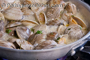 Created in honor of the poet Bulhão Pato, Little neck clams mingle in a heady broth of garlic, lemon juice and cilantro. White wine can be used and other shellfish like mussels or long necks, mahogany clams may also be used.